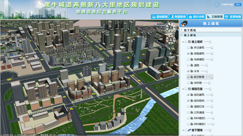 平臺集成了地理信息、三維GIS、360 街景數據、無人機全景圖數據,整合現(xiàn)有業(yè)務功能,從分利用空間分析功能為該區(qū)域發(fā)展提供技術支撐。