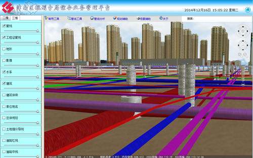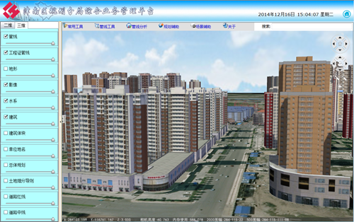 為提供規(guī)劃部門辦公效率,減少規(guī)劃業(yè)務(wù)的復(fù)雜性,依托GIS技術(shù)和規(guī)劃部門測繪數(shù)據(jù)的完整性,建立津南區(qū)規(guī)劃業(yè)務(wù)綜合平臺,為津南區(qū)規(guī)劃管理部門提供各種查詢和分析功能,實現(xiàn)快速查詢?nèi)珔^(qū)各類規(guī)劃數(shù)據(jù),全區(qū)三維地上建筑、地下管線的現(xiàn)狀情況,同時可分析查詢規(guī)劃數(shù)據(jù)、項目數(shù)據(jù)、管線數(shù)據(jù),為津南區(qū)規(guī)劃管理部門提供全方位的、立體式的支撐。