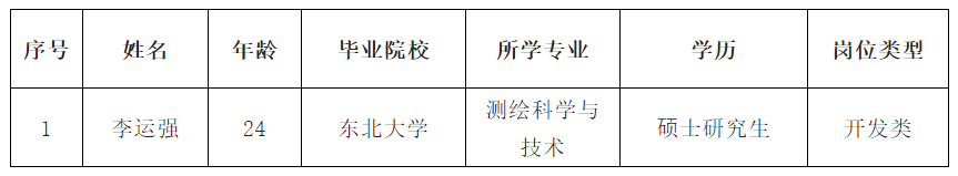 我公司2022年春季公開招聘工作已經(jīng)結(jié)束,經(jīng)面試、體檢等程序,擬錄用人員1名,現(xiàn)對擬錄用人員基本情況進行公示。(排名以姓氏筆畫為序。)