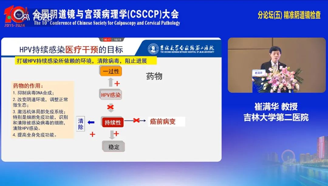 吉林大學第二醫(yī)院崔滿華教授在討論HPV持續(xù)感染是否需要治療時,提到:
