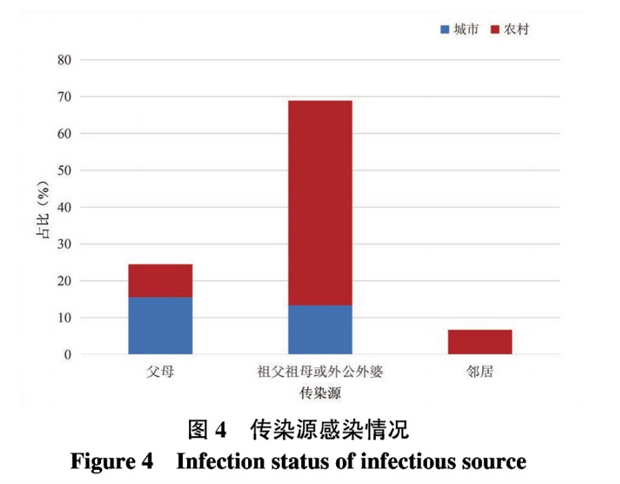 本研究結(jié)果中女患兒約占總數(shù)的68.89%,考慮與生理解剖結(jié)構(gòu)因素有關(guān)?本研究中患兒發(fā)病部位多見于肛周(73.33%),與其他研究結(jié)果相同[3,5],考慮原因是幼兒皮膚薄嫩,便后擦拭的反復(fù)摩擦造成局部皮膚屏障受損,容易導(dǎo)致HPV的感染?另外,本研究中農(nóng)村患兒占比較高,這與父母外出打工,幼兒長期留守有關(guān)?他們大多都由祖父母一輩老年人照料,衛(wèi)生習(xí)慣和防病理念較差,而且近幾年老年人性病發(fā)病率逐年升高,主要集中在農(nóng)村[6-7],如果患有尖銳濕疣的老人不注意清潔衛(wèi)生,在手部攜帶病毒的情況下護(hù)理小孩,給小孩擦拭清潔外陰及肛門,可能導(dǎo)致幼兒感染?