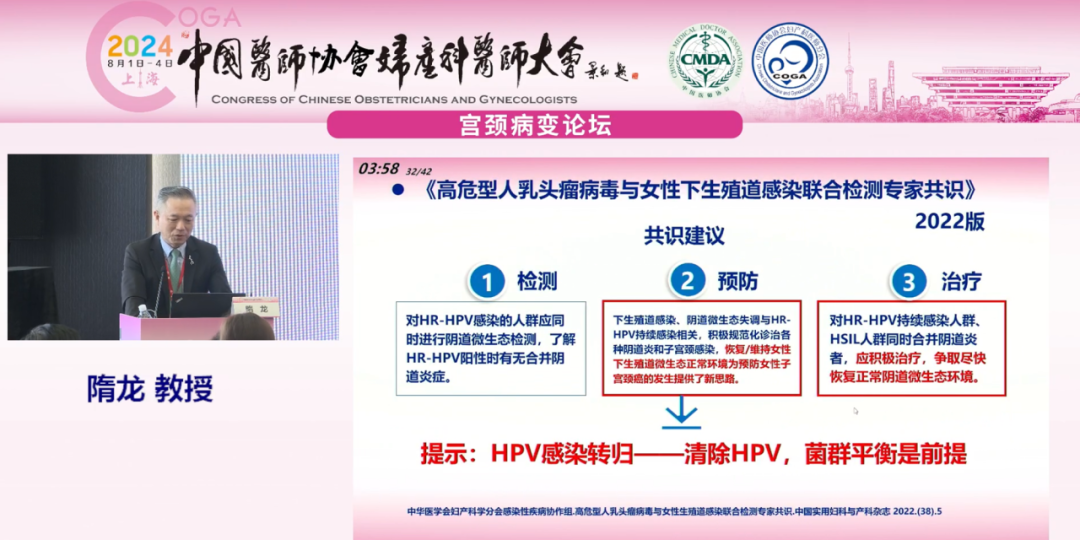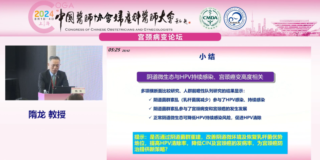 復(fù)旦大學(xué)附屬婦產(chǎn)科醫(yī)院隋龍教授就《陰道微生態(tài)調(diào)節(jié)與HPV轉(zhuǎn)歸》為題進行報告: