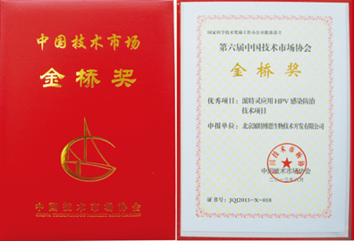 2013年,“派特靈應(yīng)用HPV感染防治技術(shù)項(xiàng)目”榮獲第六屆金橋獎優(yōu)秀項(xiàng)目獎。