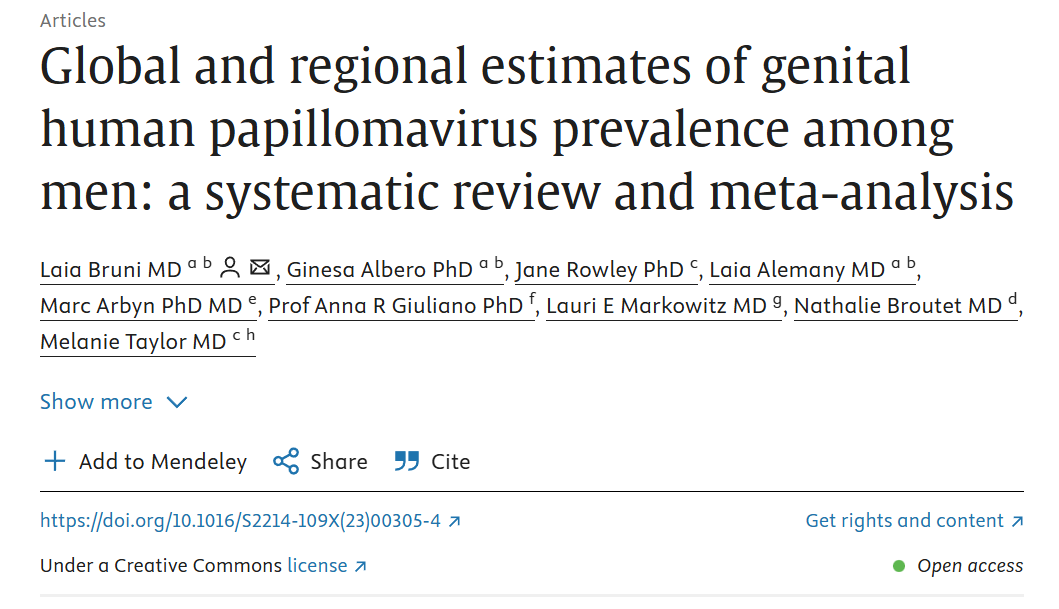 (《柳葉刀》子刊論文:全球三分之一男性已感染HPV)