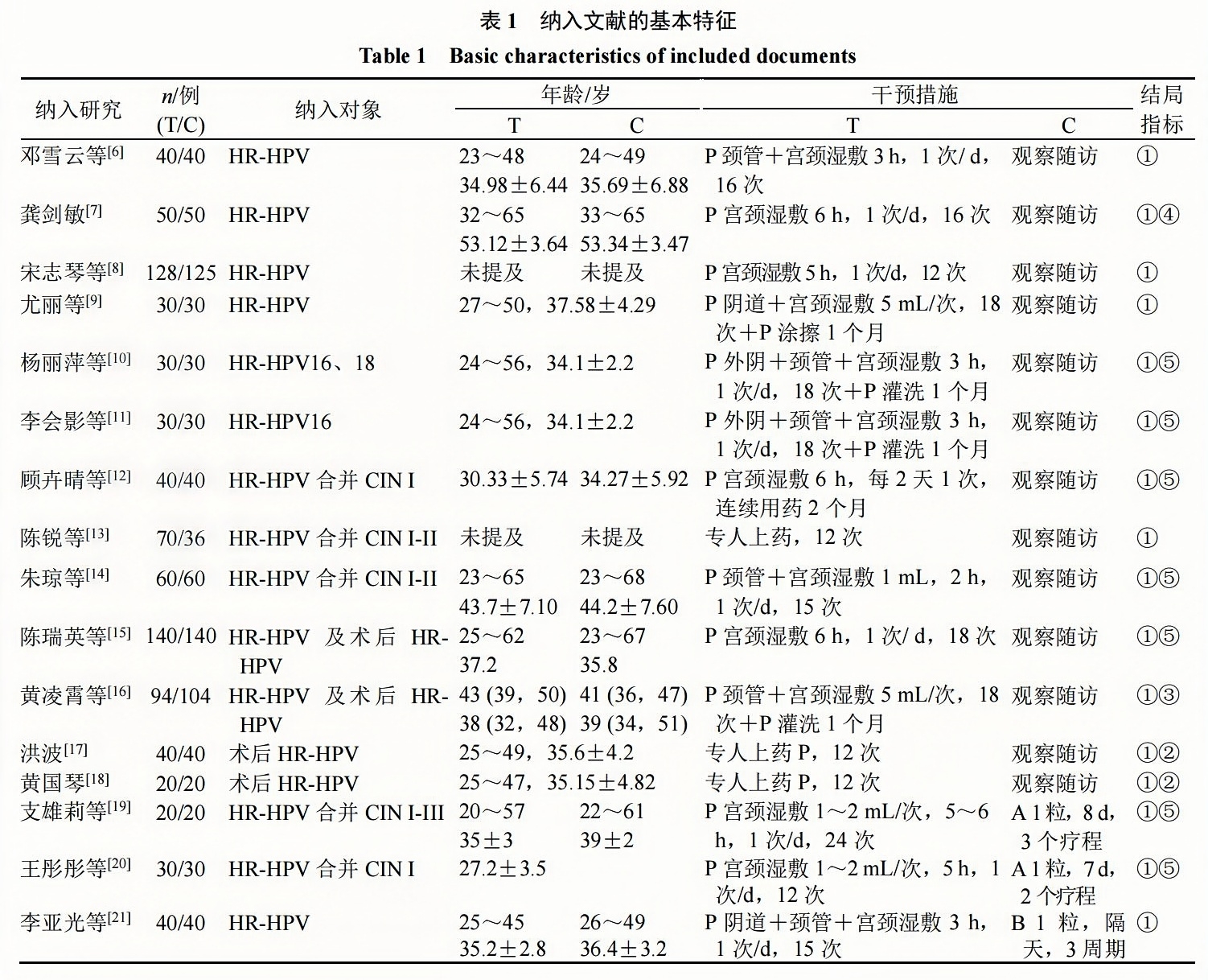 ①HPV轉(zhuǎn)陰率,結(jié)局評價標準區(qū)分轉(zhuǎn)陰?治愈和有效,結(jié)局數(shù)據(jù)包括完全轉(zhuǎn)陰人數(shù)(原亞型完全清除視為轉(zhuǎn)陰,其他情況不視為轉(zhuǎn)陰);