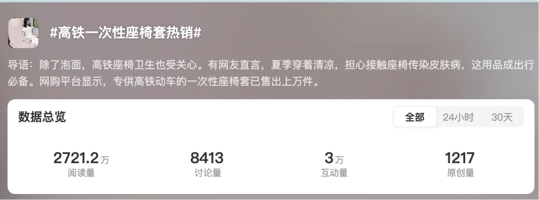 最近,正值暑假出游高峰期,有網(wǎng)友發(fā)現(xiàn)列車(chē)上有不少潔癖星人正在表演"給座椅穿雨衣"絕活!只見(jiàn)大家以迅雷不及掩耳之勢(shì)給座位套上一次性"婚紗",生怕自己的短褲短裙和座椅來(lái)場(chǎng)"肌膚之親",這波操作背后,竟藏著個(gè)靈魂拷問(wèn):高鐵座椅真會(huì)傳染HPV嗎?