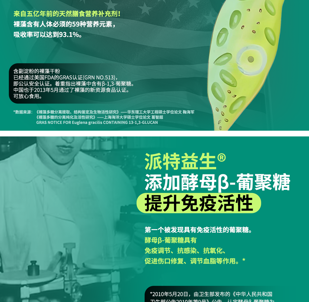 - 添加美國FDA、GRAS認(rèn)證的酵母β-葡聚糖 | 添加美國進(jìn)口裸藻粉